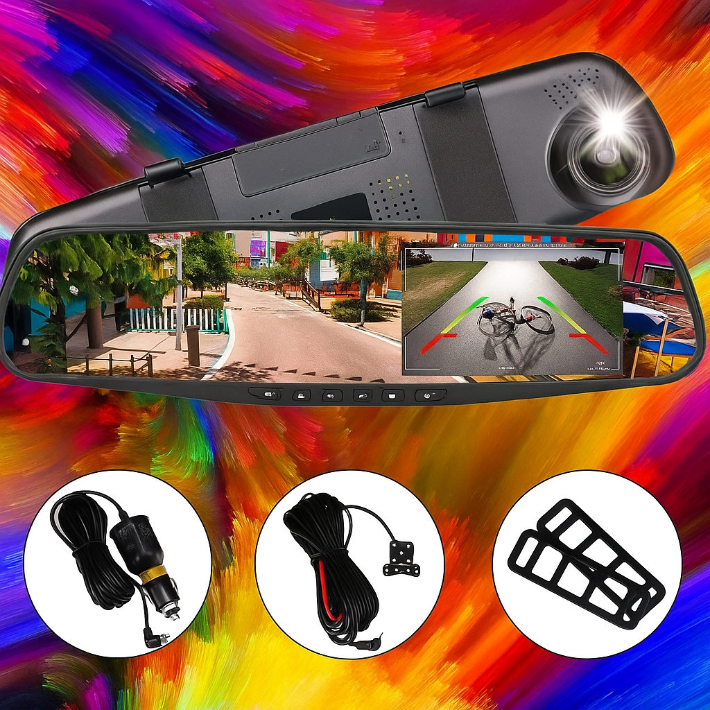 Mayor seguridad al conducir con visión completa en todo momento. Este espejo retrovisor con cámara integrada transforma tu experiencia al volante, permitiéndote una conducción más segura, cómoda y con mayor visibilidad. Su pantalla incorporada de 4.3 pulgadas te ofrece una vista clara de lo que ocurre detrás del vehículo al retroceder o estacionar.